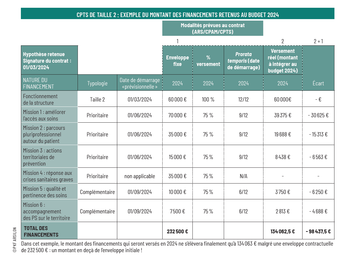 Lors de la création d'une CPTS, la signature du contrat entre la structure, la CPAM et l'ARS peut aboutir aux versements de fonds publics pouvant atteindre 580 000 euros (CPTS de taille 4 intégrant l'ensemble des financements fixes et variables, voir l'avenant 2 à l'ACI signé le 20 décembre 2021). Dans ce contexte, il est essentiel, pour les professionnels de santé, de réfléchir à la meilleure adéquation entre les moyens alloués – les financements – et les actions à mettre en oeuvre et qui sont fixées dans les ACI.
