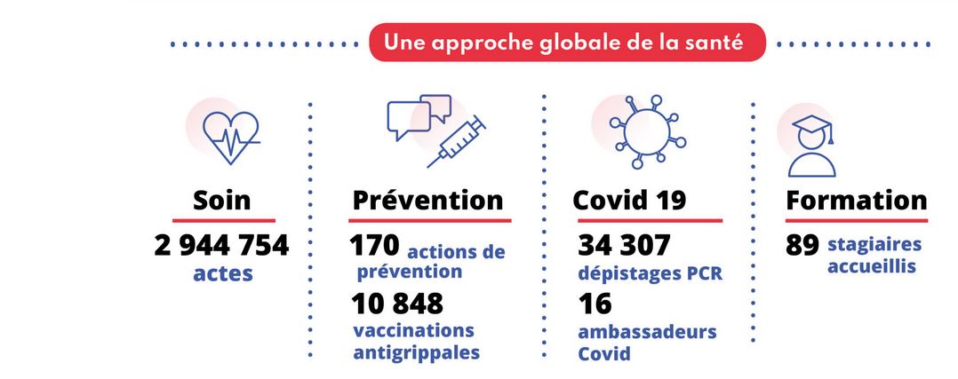 Durant l’année 2020, 2 944 754 actes de soin ont été réalisés, 170 actions de prévention et plus de 10 000 vaccinations antigrippales. Fortement mobilisés pendant la crise sanitaire, les centres de santé ont réalisé plus de 34 000 dépistages PCR.