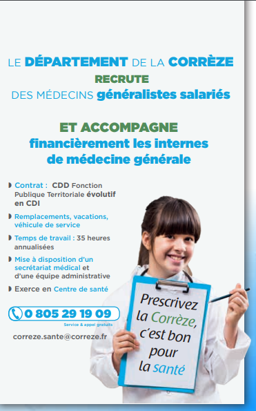 • Recrutement de nouveaux médecins pour permettre l’ouverture d’antennes supplémentaires de Corrèze santé.