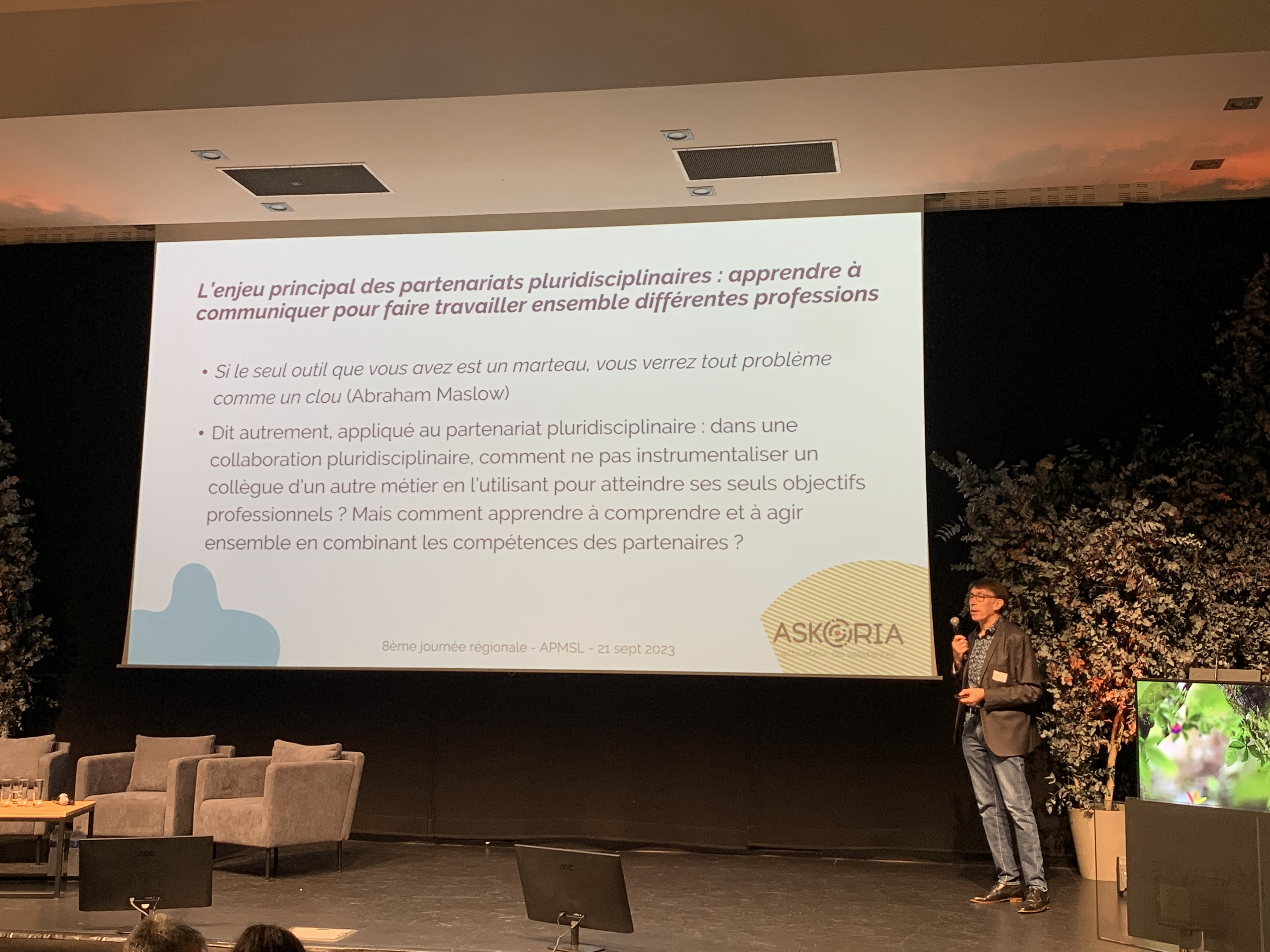 La conférence plénière qui s’est déroulée durant la matinée, a permis d’aborder les avantages, mais aussi les complications du partenariat lors de sa mise en œuvre, grâce à une intervention de Philippe Lyet, docteur en sociologie et coordinateur scientifique à Askoria, un centre de formation professionnelle et d'enseignement supérieur en travail social basé à Rennes. Ce dernier est revenu sur les origines du partenariat et les moyens nécessaires pour en développer. "Le partenariat est un mode d’action, qui pose un certain nombre de questions, surtout du côté de la communication, de l’intercompréhension, mais aussi sur l’accord entre les parties prenantes sur les modalités opératoires." Selon lui, la mise en place de partenariats se fait lorsque qu’un problème est rencontré et que seul l’ensemble des compétences réunies peut résoudre. Cependant, cela regroupe un certain nombre de défis et d’enjeux, notamment au niveau de la coordination. "L’enjeu principal des partenariats pluridisciplinaires, c’est d’apprendre à communiquer pour faire travailler ensemble différentes professions", dévoile Philippe Lyet.