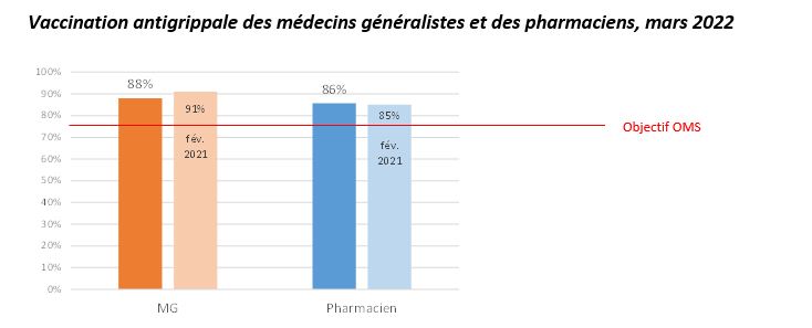 L’impression des professionnels d’avoir vacciné moins de patients par rapport à la saison précédente est corroborée par les estimations de la couverture vaccinale de Santé publique France publiées dans son bilan préliminaire de l’épidémie de grippe 2021-22 [1er juin 2022, NDLR]. Au 28 février dernier, la couverture vaccinale des personnes à risque ciblées par la vaccination grippe était de 52,6% (56,8% chez les 65 ans et plus) contre 55,8% pour la saison 2020-2021 (59,9% chez les 65 ans et plus). Au-delà de l’extension du nombre de professionnels de santé vaccinateurs et de la campagne de vaccination antigrippale portée par l’Assurance Maladie, une démarche encore plus active de recherche et de motivation des personnes ciblées (voire "d’aller vers" pour certaines personnes) semble encore nécessaire.