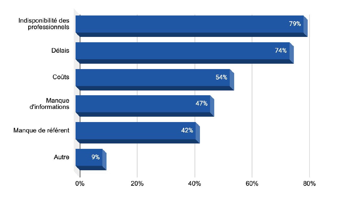 D'autres barrières s'abattent encore sur le parcours de soins : faible disponibilité des professionnels de santé, délais de rendez-vous, manque d'information, et coûts financiers. 30% des répondants déclarent d'ailleurs avoir déjà eu recours à des aides financières ou des subventions pour couvrir les coûts liés aux troubles de leurs enfants.