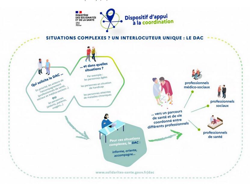 DAC pour dispositif d’appui à la coordination : un point d’entrée unique pour gérer les situations de santé et de vie complexes. Depuis fin juillet dernier, chaque territoire est doté de ce dispositif unique – né de la loi relative à l'organisation et à la transformation du système de santé du 24 juillet 2019 – qui vient prioritairement en appui aux professionnels de santé, sociaux et médico-sociaux.