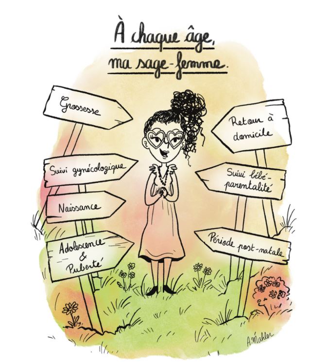 Elles sont neuf – Fiona Alviani, Chloé Célimendiz, Gwennaëlle Droitcourt, Dana Girard, Sarah Jonett, Marine Langlet, Katia Roussel, Laurence Schwarz et Stéphanie Jeandon – à avoir planché sur un guide succinct, à destination à la fois des professionnels de santé et des patientes. Le but de ce guide, illustré par une illustratrice locale, Anne Mahler, est d’informer sur les différentes missions de sages-femmes : il est possible de les consulter aussi bien en cas d'infections sexuellement transmissibles, que pour effectuer un suivi gynécologique ou une grossesse, s’informer sur le baby-blues ou faire de la rééducation périnéale. "Nous en profitons pour relancer le Prado, programme d‘accompagnement du retour à domicile, mis en place par la CPAM mais mis en stand by depuis la crise sanitaire, ce qui fait que de nombreuses jeunes mamans rentraient chez elles sans suivi… De nombreux médecins ne savent pas vers qui adresser les patientes et ce guide va permettre une meilleure prise en charge et une meilleure coordination", pointe Stéphanie Jeandon.