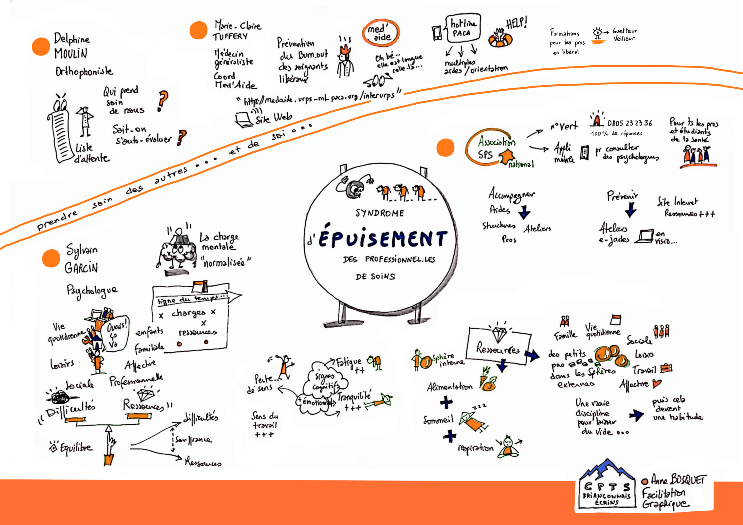 "Pourtant, ce sont des thématiques actuelles, poursuit-elle, notamment pour les libéraux qui ne font pas partie d’une équipe, qui sont seuls au sein de leur cabinet et qui partage moins la charge de travail autour d’un patient. Et ils ne gèrent pas uniquement leurs patients, ils sont aussi leur propre patron." Parmi les témoignages délivrés ce soir-là, celui d’une orthophoniste : "En libéral, précise Justine Wyts, ces professionnelles sont très peu nombreuses et sont beaucoup sollicitées. Dire non à un patient, c’est difficile, alors on a tendance à en prendre plus, donc à faire plus d’heures, on a moins de temps et on travaille moins bien, donc l’estime de soi est dégradé. C’est un cercle vicieux qui touche beaucoup de professionnels, pas seulement des libéraux."