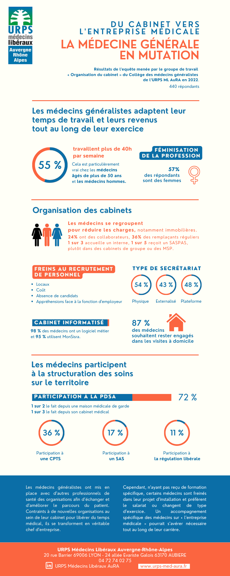 Si les "nouvelles organisations du cabinet médical ont transformé le médecin en véritable chef d’entreprise", observe l’URPS médecins libéraux AuRA, "faute de formation spécifique, certains médecins sont freinés dans leur projet d’installation et préfèrent le salariat ou un autre type d’exercice". Un accompagnement spécifique sur "l’entreprise médicale" est donc nécessaire, estime-t-elle.