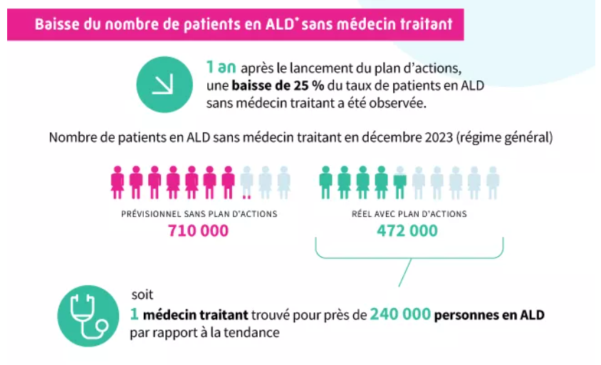 240.000 personnes. C’est le nombre de patients en ALD qui ont retrouvé un médecin traitant en 2023. Le lancement du plan d'action pour apporter une solution aux patients souffrant d’une affection de longue durée (ALD) et n’ayant pas déclaré de médecin traitant confié il y a un an à l’Assurance maladie, semble porter ses fruits. Selon des chiffres publiés hier, "la tendance s'inverse". De 700.000 fin 2022, ils étaient moins de 472.000 fin 2023, soit "une baisse de 25 % du taux de patients en ALD sans médecin traitant, assure la Cnam. La courbe a été clairement infléchie sur l’année 2023."
