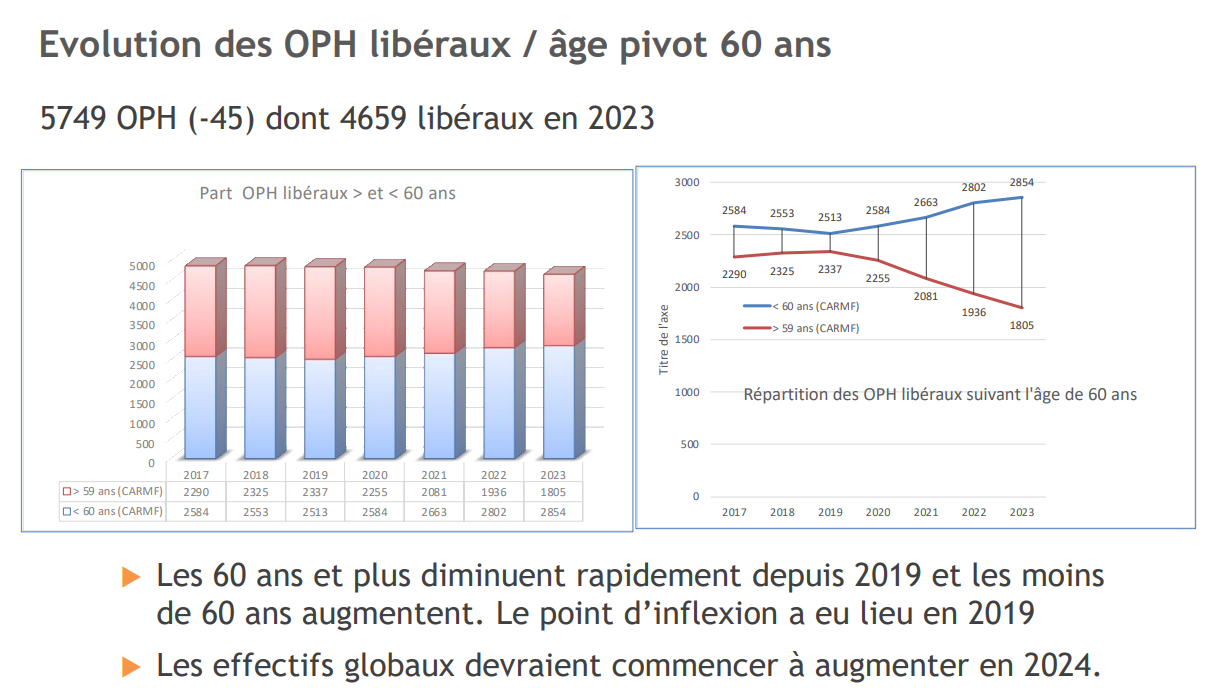Le syndicat précise que ces résultats sont à "mettre en perspective avec l’amélioration de la proportion de rendez-vous obtenus (+ 8 %) depuis 2019 qui s’explique notamment par l’efficacité croissante des protocoles organisationnels et le développement rapide du travail aidé". En 2023, 94% des ophtalmologistes de moins de 40 ans travaillent en travail aidé (en équipe avec un orthoptiste ou un assistant médical) et 78% de l’ensemble de la profession, tout âge confondu (contre 63% en 2019).