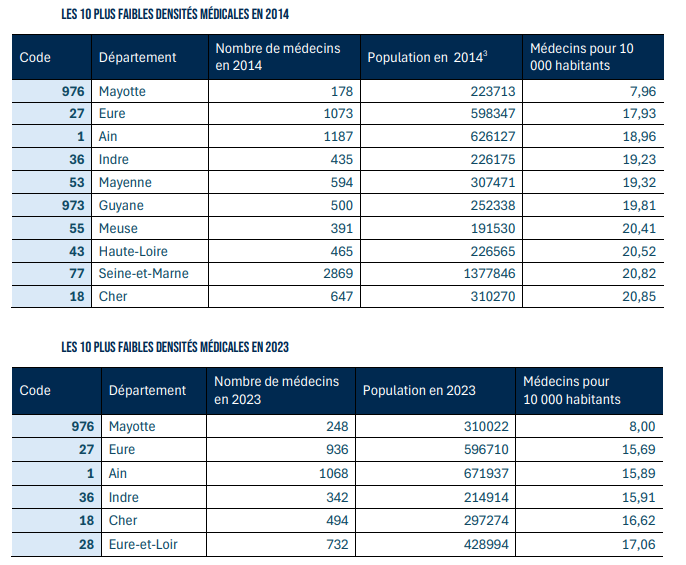 Des territoires comme l’Eure ou l’Ain, déjà qualifiés de "déserts médicaux” à l'époque, apparaissent aujourd’hui encore plus sinistrés.