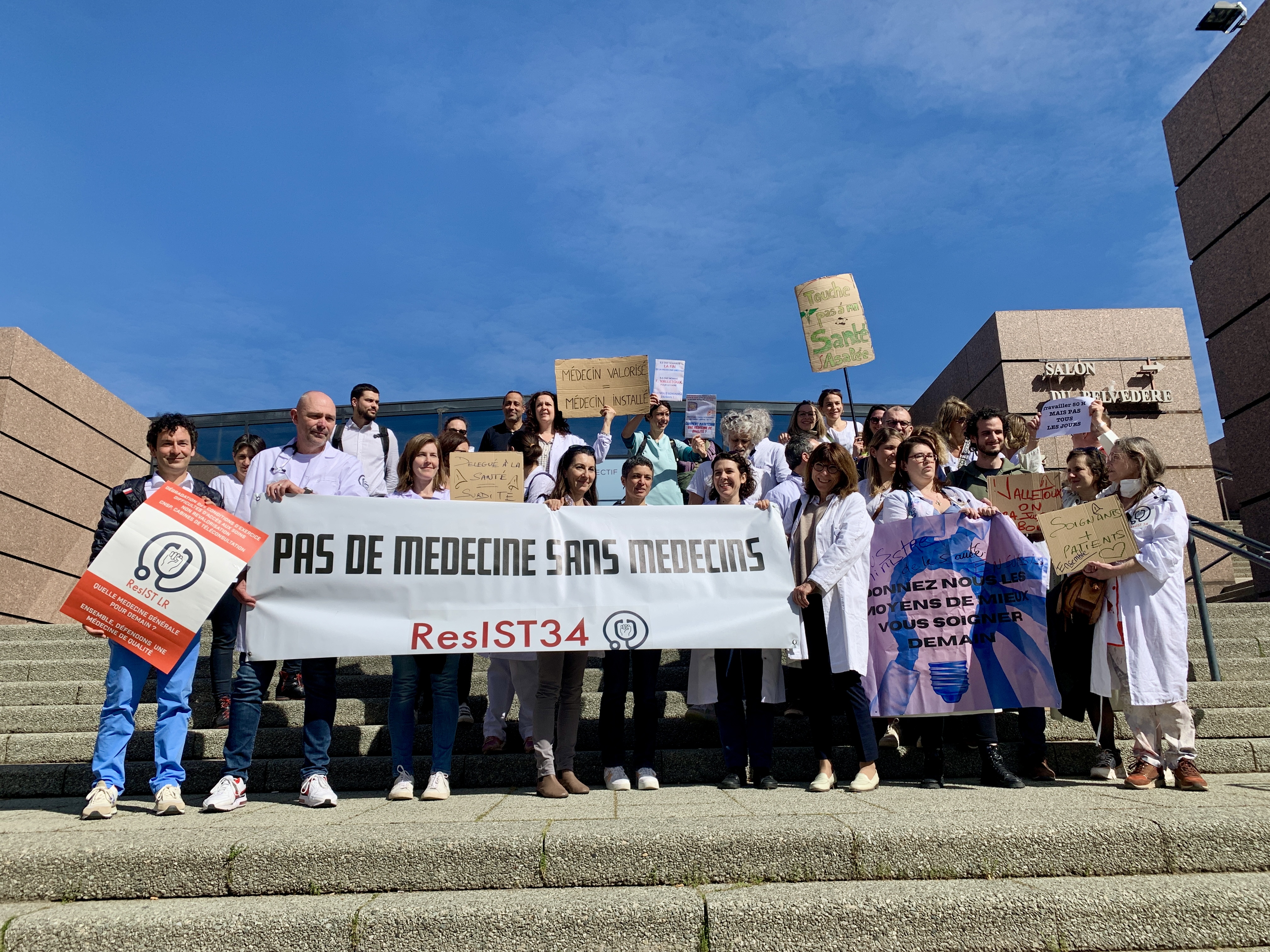 Une cinquantaine de médecins et d'infirmières se sont mobilisées ce vendredi matin devant le Corum de Montpellier pour adresser un message à Frédéric Valletoux, qui intervenait à l'ouverture des 12e Rencontres nationales.