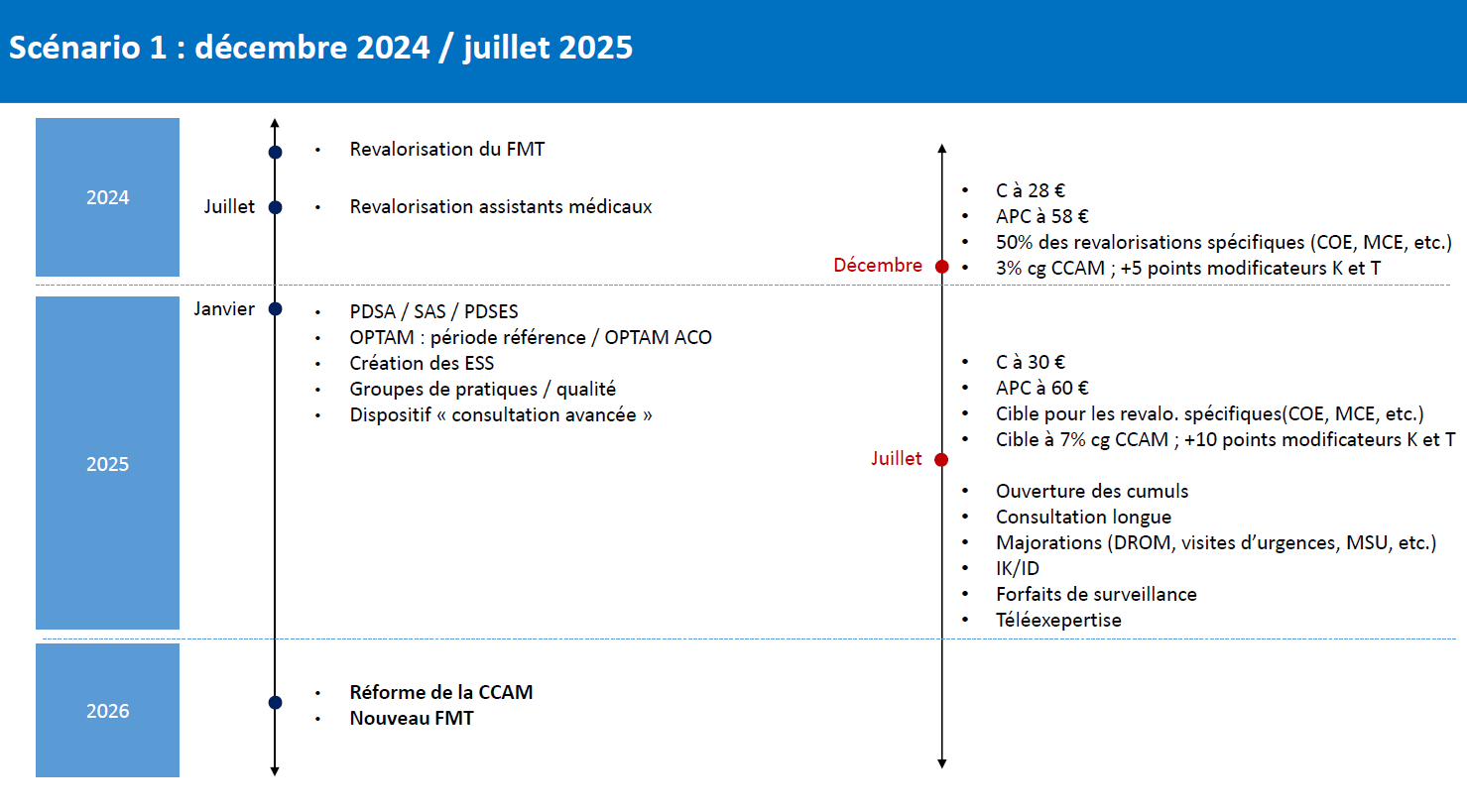 Hier tard dans la soirée, l'Assurance maladie a présenté une ébauche de calendrier d'application à la suite de la première journée de négociations conventionnelles avec les syndicats de médecins. Très attendu, les deux scénarios proposés par l'Assurance maladie risque de provoquer des "points de crispation" au vu des dates proposés pour l'application des revalorisations tarifaires.