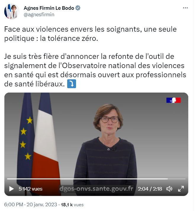 C’est sur les réseaux sociaux qu’Agnès Firmin Le Bodo, ministre déléguée auprès du ministre de la Santé et de la Prévention, chargée de l'Organisation territoriale et des Professions de santé l’a annoncé, le 20 janvier dernier : la plateforme de déclaration des violences en santé s’ouvre aux libéraux. "Leur mode d’exercice les expose tout autant aux risques que rencontrent agents et salariés", a-t-elle expliqué.