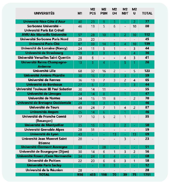 Sans surprise, Paris, Marseille et Lille comptabilisent, à elles trois, un tiers (30,1%) des IEPA. Et en M2, la répartition des IEPA par mention est plus marquée : 53,1 % des étudiants optent pour la mention pathologies chroniques stabilisées ; prévention et polypathologies courantes en soins primaires (PCS), et 24,3 % pour la psychiatrie et Santé mentale (PSM)... loin devant les urgences (U, 9,2 %), l’oncologie et hématologie-oncologie (OH, 8,6%), et néphrologie dialyse et transplantation rénale (NDT, 4,8%). Ainsi note l’Unipa, si “le nombre d’étudiants de la mention Urgences quadruple”, les “IEPA de la mention OH est en baisse de 1/3 de leurs effectifs”.