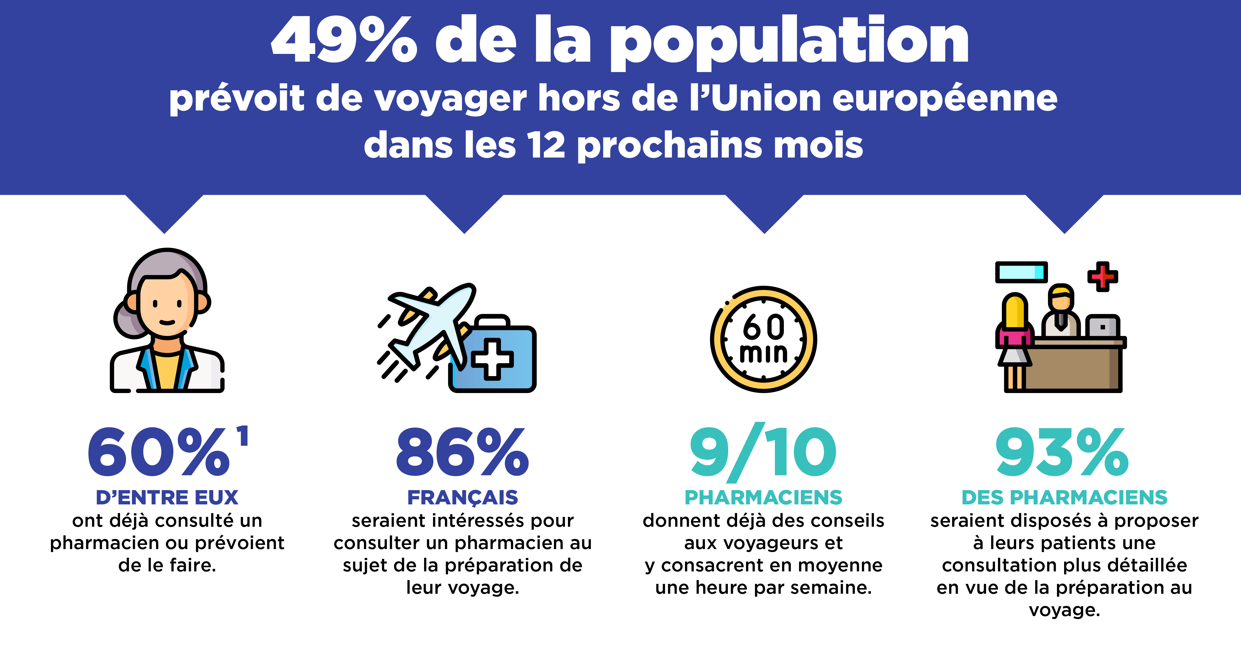 Une démarche confirmée, précisent-ils, par une étude Ipsos pour le laboratoire Valneva* en 2024 qui révélait que 86% des personnes prévoyant un voyage hors de l'Union européenne souhaiteraient "des consultations spécialisées en pharmacie axées sur la préparation au voyage, incluant des conseils de prévention et la possibilité d'être vacciné". Dont 63% seraient prêtes à être vaccinés directement en pharmacie, si ce service y était proposé.