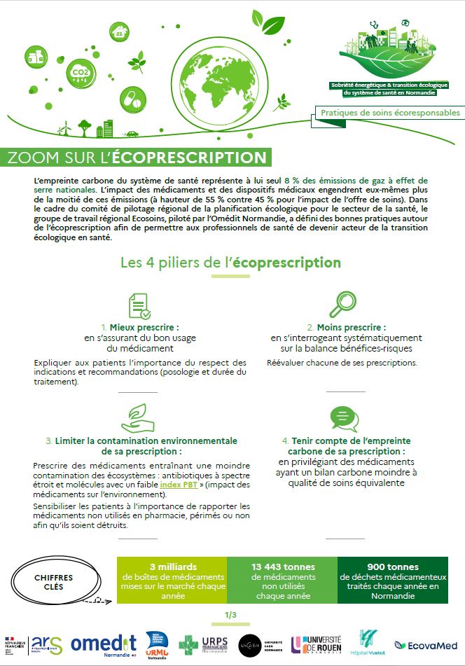 Santé environnementale et décarbonation des cabinets, contexte spécifique au territoire, arbre décisionnel sur ce qui est jetable/réutilisable, discours pluriprofessionnel au-delà de la voix du médecin, déprescription… Alice Baras, professionnelle de santé durable et autrice du Guide du cabinet écoresponsable, a détaillé toutes les opportunités et possibilités pour agir "face à l'urgence en santé-environnement". Parce que l’empreinte carbone du système de santé représente, à lui seul, 8 % des émissions de gaz à effet de serre au niveau national, indique une plaquette sur l'écoprescription présentée par l'Omédit Normandie. Mais aussi, parce que l’impact des médicaments et des dispositifs médicaux génèrent plus de la moitié de ces émissions. Que faire ? L'Observatoire régional du médicament, des dispositifs médicaux et de l'innovation thérapeutique détaille les 4 piliers de l'écoprescription : mieux prescrire, moins prescrire, limiter la contamination environnementale de sa prescription et tenir compte de l’empreinte carbone de sa prescription. Une "urgence" pour reprendre les propos d'Alice Baras, sachant que 3 milliards de boîtes de médicament sont mises sur le marché chaque année et que plus de 13 tonnes sont inutilisés.