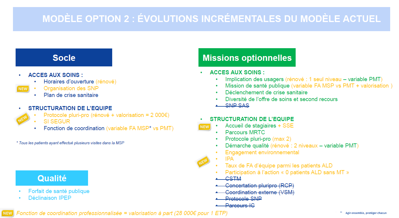 Si un premier modèle de rémunération avait été proposé par la Cnam lors des précédentes sessions – ce qui avait amené notamment la prise en compte de l’équipe au travers de nouveaux modulateurs, l'augmentation globale de 18 % des montants versés et un plafonnement maximum du montant que peut percevoir une MSP –, une deuxième option a été mise sur la table ce jeudi, cette fois sans plafonnement de ce montant maximum.