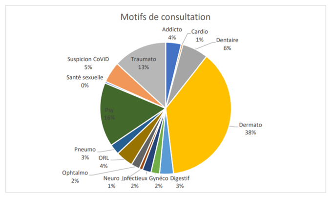 Dès les premiers jours, "entre 40 et 60 jeunes y venaient quotidiennement sans rendez-vous pour une douche, un petit-déjeuner, un suivi social… Mais malheureusement, le confinement nous a fait beaucoup de mal, raconte l'infirmier libéral. En 2020, l’équipe a réalisé 141 consultations infirmières, 14 consultations dermatologiques et 39 consultations mixtes (médecin-infirmière ou infirmière-pédicure-podologue par exemple) ; 63% des jeunes ont consulté une fois et 16% à deux reprises.