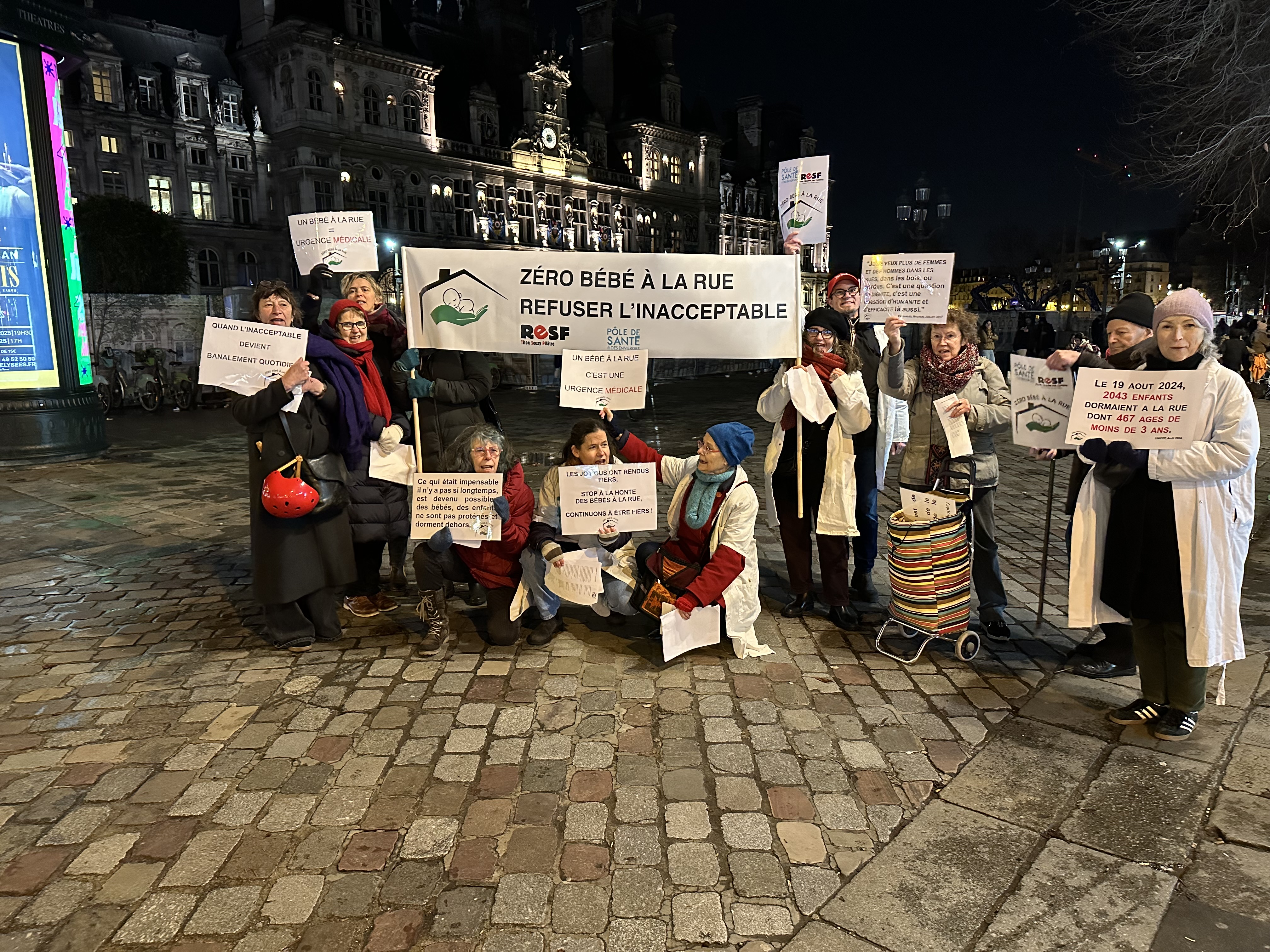 crédit : K.R. - Le Collectif "Zéro bébé à la rue" mobilisé devant l'Hôtel de ville de Paris, le 6 janvier.