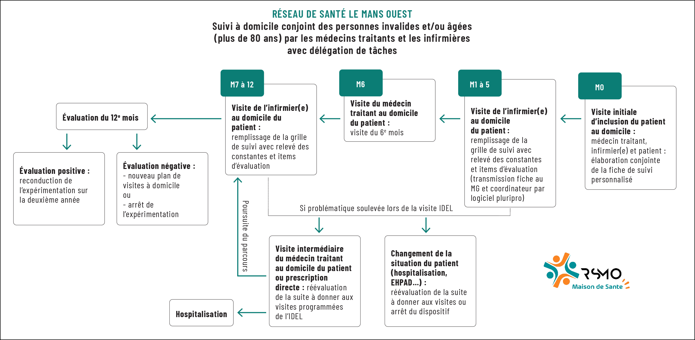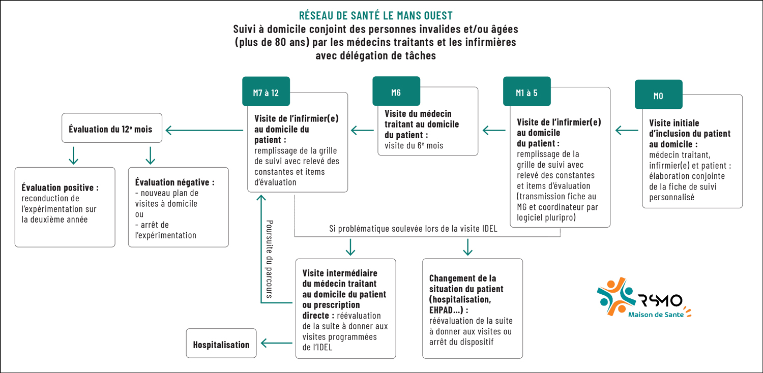 Face à ce constat, les professionnels de santé du RSMO ont réfléchi aux solutions possibles. "Nous étions démunis car il n'existait pas de protocole entre les infirmières et les médecins pour justement aider ces derniers à voir les patients à domicile. Nous nous sommes alors engouffrés dans le dispositif 'article 51' mis en place par le ministère", explique l'infirmier. En juin 2017, Véronique Jaguelin commence à écrire le projet "en décrivant une prise en charge à domicile pour ces patients. Comme il devait être terminé pour le mois de juillet, nous n'avons pas eu beaucoup de temps. Deux ans plus tard, nous avons eu l'autorisation de démarrer cette expérimentation", raconte la médecin généraliste. C'est ainsi qu'est née l'expérimentation Suivi à domicile conjoint des personnes invalides et/ou âgées par les médecins traitants et les infirmières. Si le projet a été rédigé pour répondre à une problématique locale, l'objectif est bien de le rendre reproductible à une échelle beaucoup plus large.