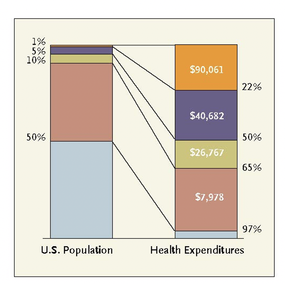 Légende : 65 % des dépenses de santé sont « consommées » par 10 % de la population
