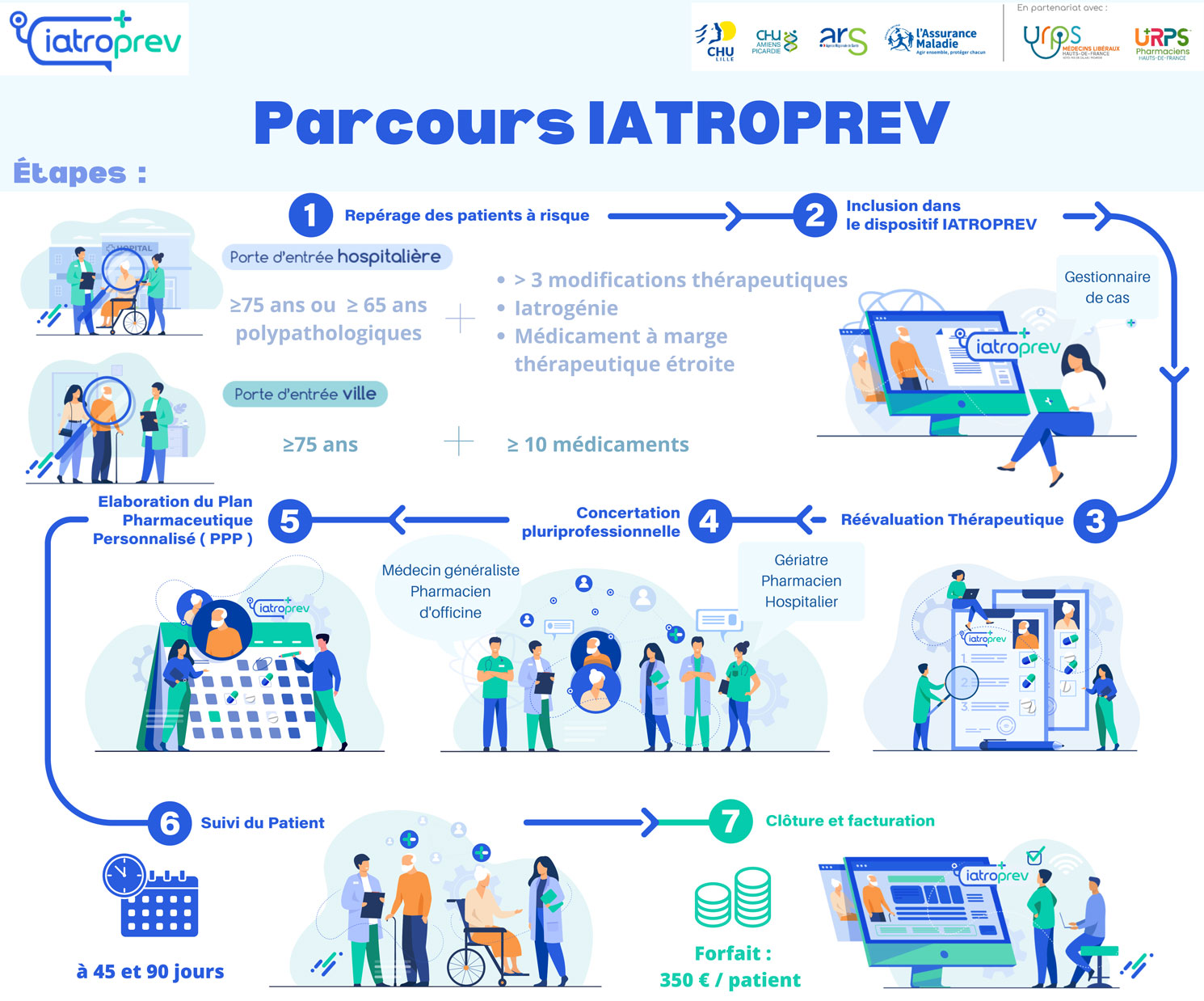 Pour discuter de ces recommandations et, plus globalement, pour faire le point sur les traitements du patient, "une réunion de concertation pluriprofessionnelle téléphonique est organisée entre hospitaliers et professionnels de ville", explique Carole Rognon. Une RCP où "on va s'écouter les uns les autres, c'est le cœur de Iatroprev, ajoute-t-elle. Et c'est ce qui différencie ce programme d'autres projets d'optimisation médicamenteuse." À l'issue de la RCP, les professionnels conviennent ensemble d'un plan pharmaceutique personnalisé (PPP) adapté au patient.