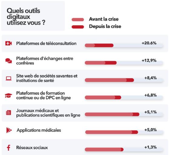Tous les services semblent avoir bénéficié de la crise : presse, applications, réseaux sociaux, sites des sociétés savantes, DPC, plateformes d’échanges entre confrères…
