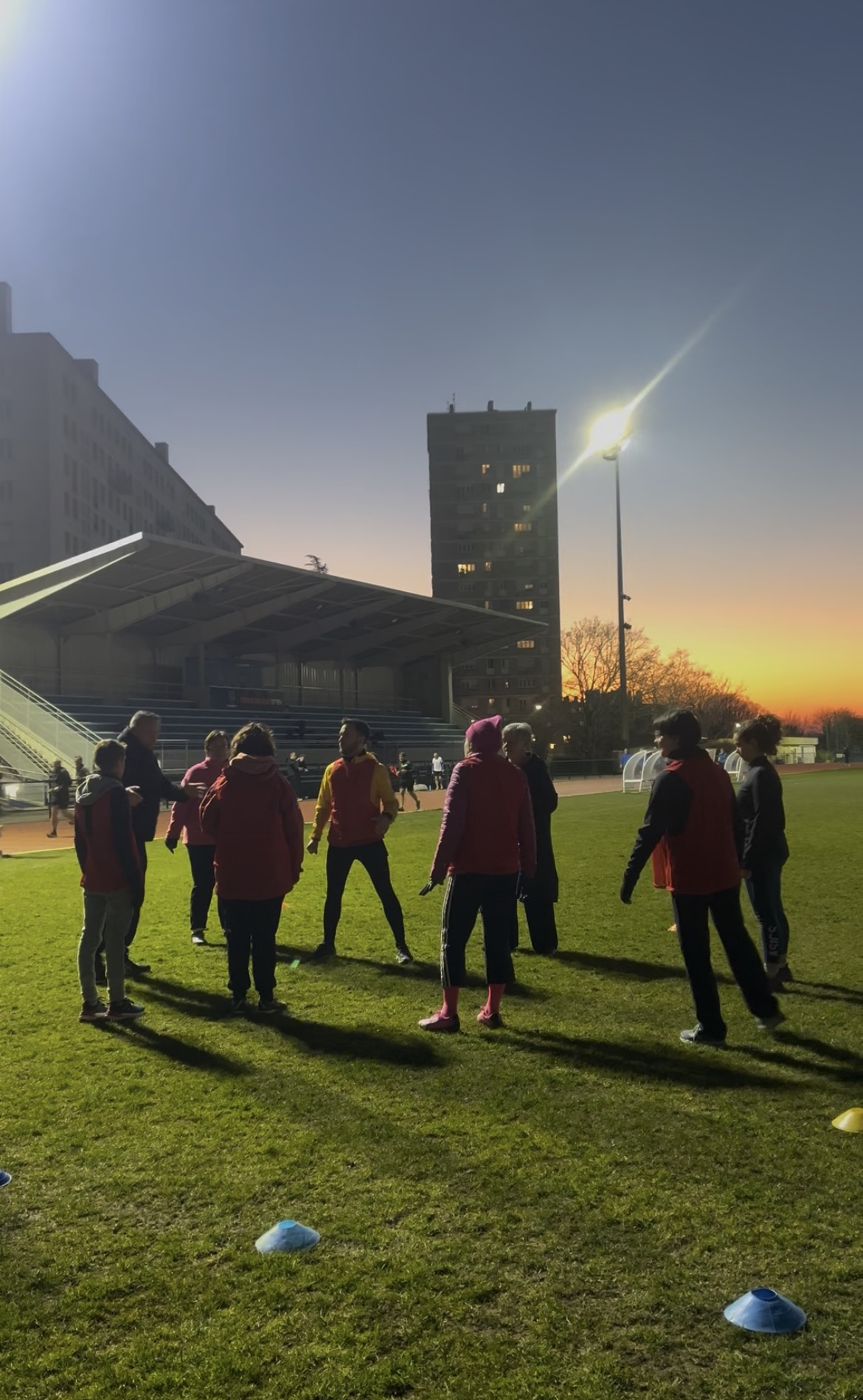 Châtillon (Ile-de-France), stade Guy Môquet, 18h56. Les dernières joueuses arrivent tout juste. La séance d'entraînement démarre à 19h et elles ne rateraient le début pour rien au monde. Elles sont déjà en tenue : des vêtements chauds, car le temps se rafraîchit dès la nuit tombée, mais surtout de leur plus beau sourire. Car Rugby cancer, c'est avant tout de la bonne humeur ! "On déconne, on bouge, on peut même parfois s'engueuler, comme toute équipe !", lance l'une des 14 joueuses présentes à cette session du 18 mars. Elles partagent toutes ce dynamisme mais ont aussi un deuxième point commun, car toutes sont atteintes de cancer ou en rémission. Alors, "chacune vient comme elle est, avec ses hauts et ses bas, sa force et ses faiblesses, sa fatigue et son énergie... C'est ce qui fait la richesse de cette équipe pas comme les autres", affirme fièrement une autre joueuse du groupe.