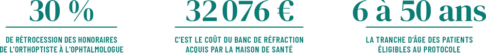 La MSP de Pagny-sur-Meuse (Grand Est) est engagée, depuis septembre 2022, dans un protocole dit Muraine, afin de réduire les délais de dépistage des troubles visuels. Les patients peuvent obtenir un rendez-vous rapide auprès de l'orthoptiste, qui télétransmet les données recueillies à l'ophtalmologue.