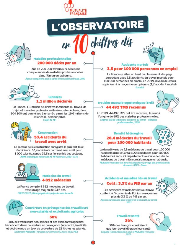 L'Observatoire santé de la Mutualité est, cette année, largement consacré à la santé au travail, sur laquelle elle fait un certain nombre de propositions. "49% des actifs indiquent consciemment avoir déjà rencontré des problèmes de santé au travail, dont 24% à plusieurs reprises", souligne la Mutualité, qui appelle en particulier à muscler les efforts de prévention dans les entreprises.