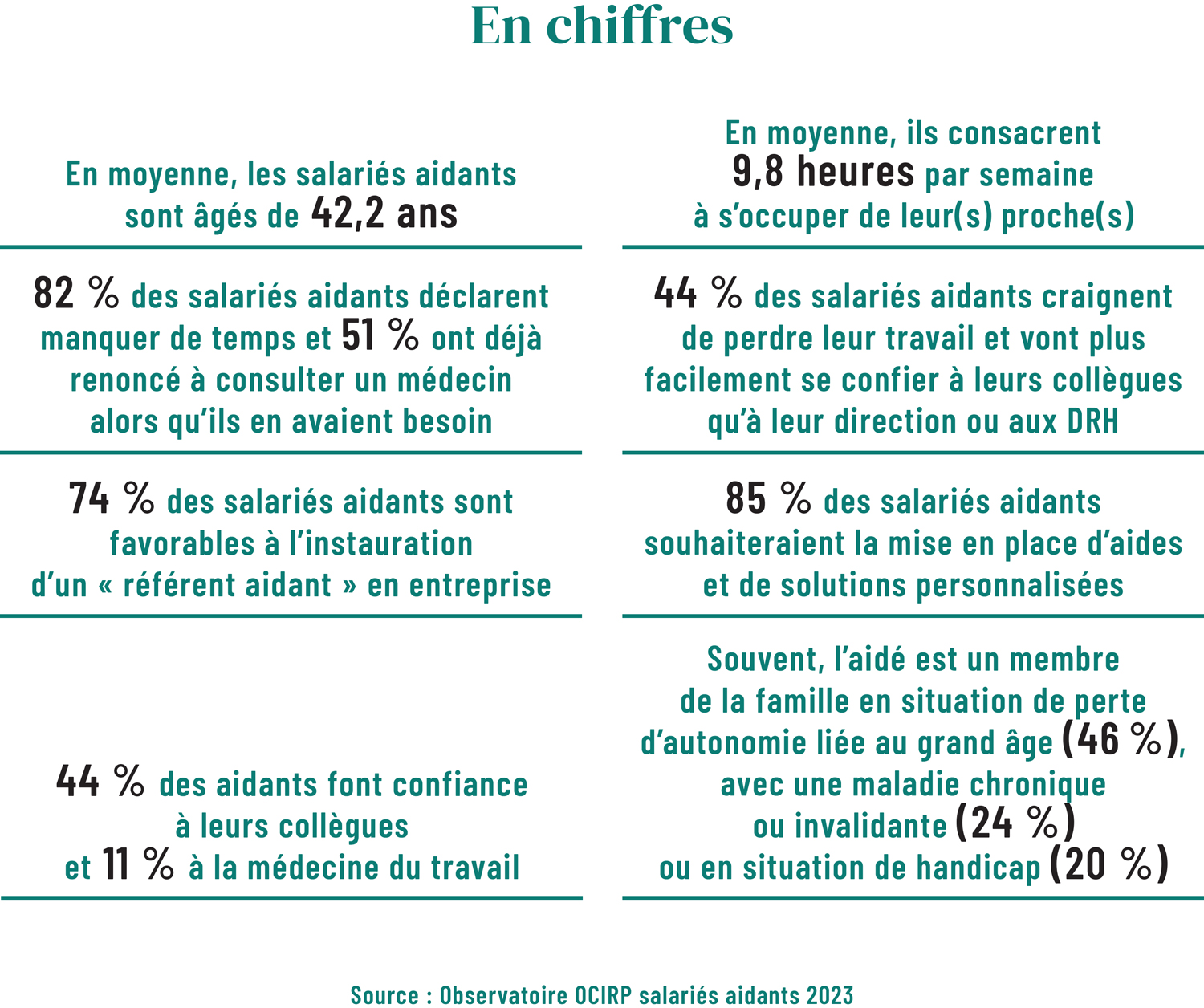 Mais comment accompagner ces salariés sans que cela coûte une fortune à l'entreprise et ne vienne désorganiser l'activité ? Malgré les quelques dispositifs mis en place, la situation reste floue et le problème continue de grossir. Il est nécessaire de bien comprendre les défis auxquels les salariés aidants doivent faire face et de réfléchir aux moyens concrets de les soutenir dans le paysage politique et économique de la France.