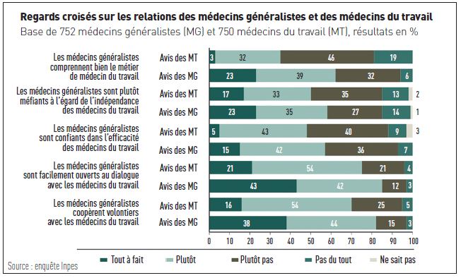 En 2010, une étude de l’Inpes montrait par exemple que seuls 39 % des médecins généralistes interrogés avaient sollicité la médecine du travail pour une visite de préreprise plus de six fois au cours des douze derniers mois. « Avec les années, les contacts semblent augmenter », note néanmoins le généraliste, qui met en avant une véritable envie de dialogue. Mais des problèmes de représentation limitent les interactions, notamment sur la compréhension des deux corps de métier sur le rôle des médecins du travail.